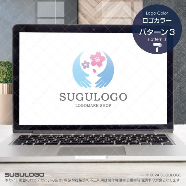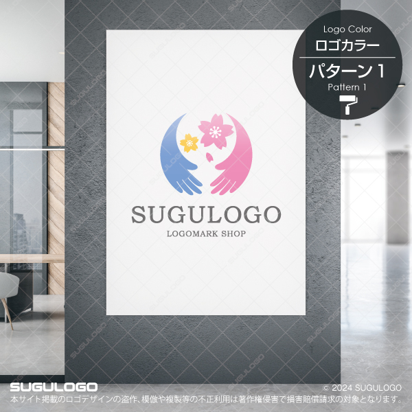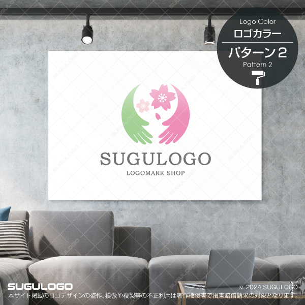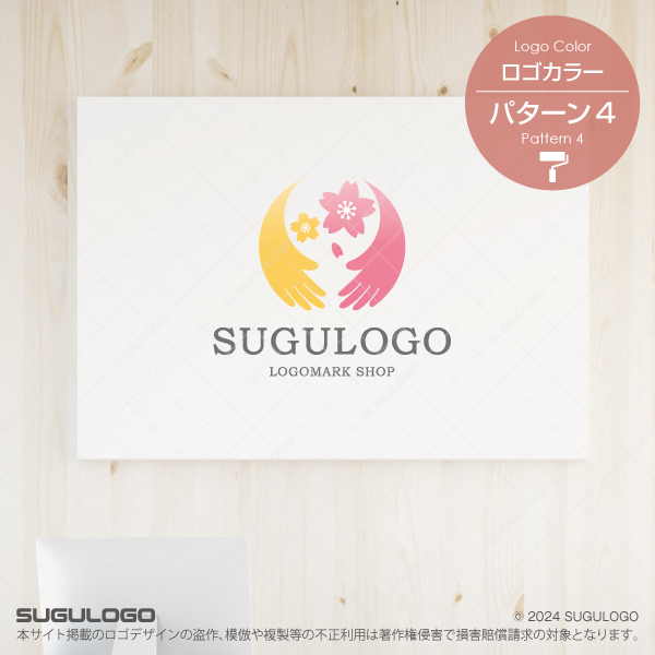 【ロゴ販売】桜を優しく包む両手のロゴデザイン