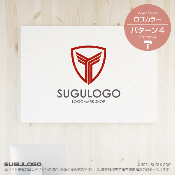 【ロゴ販売】盾と翼のエンブレムロゴ