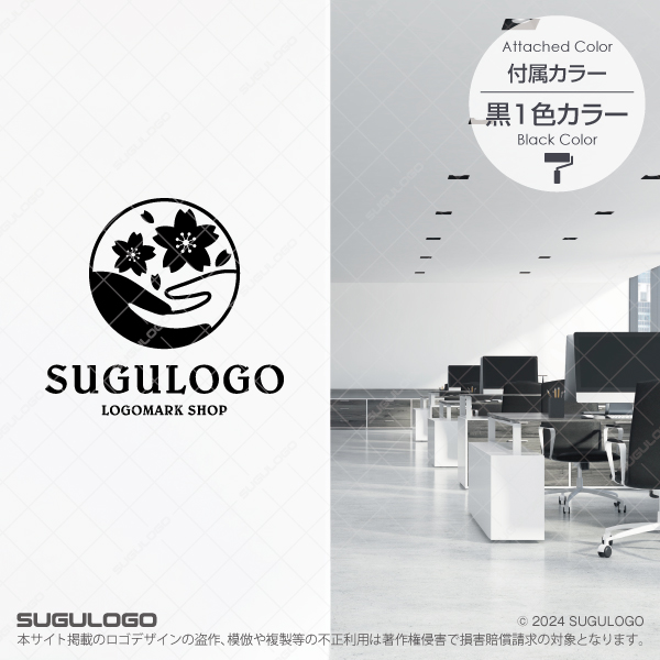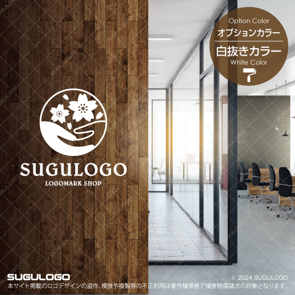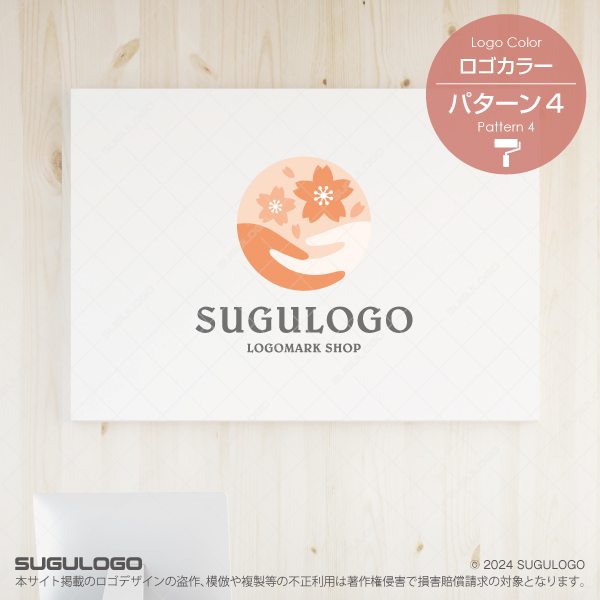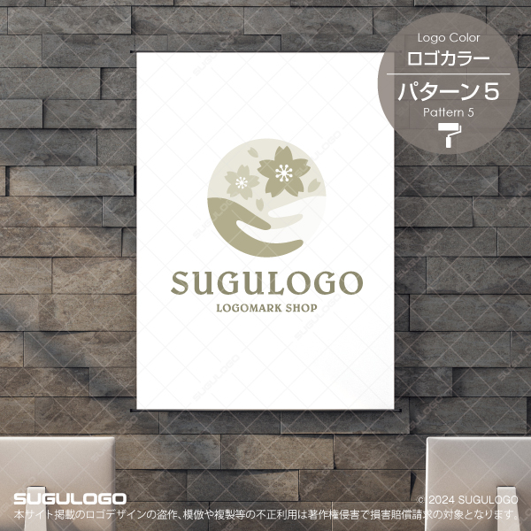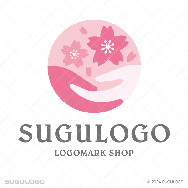 【ロゴ販売】桜と手を包み込む慈愛のロゴ