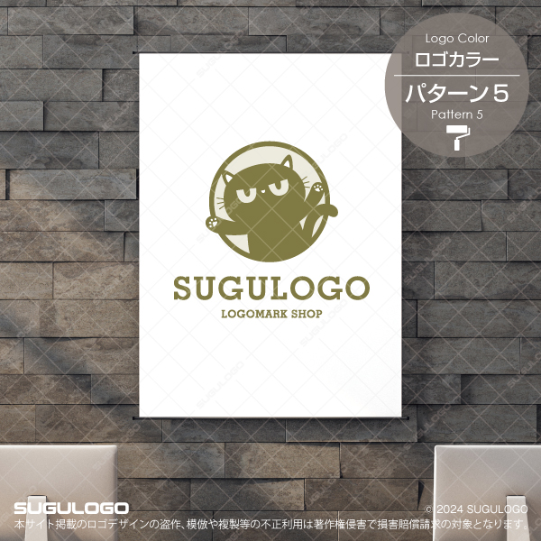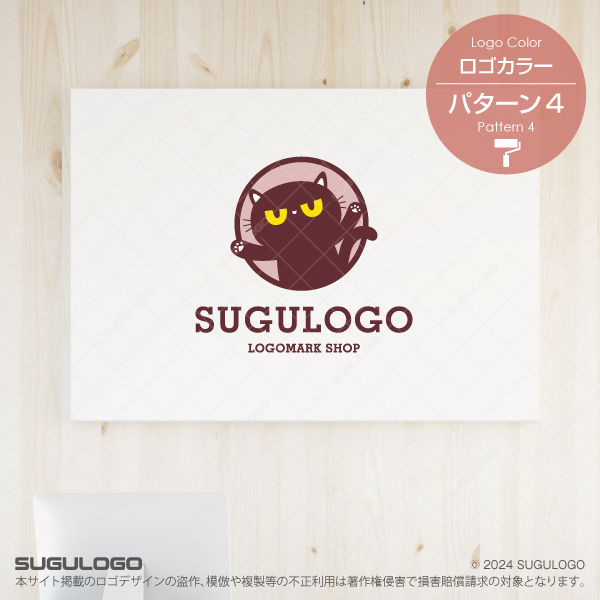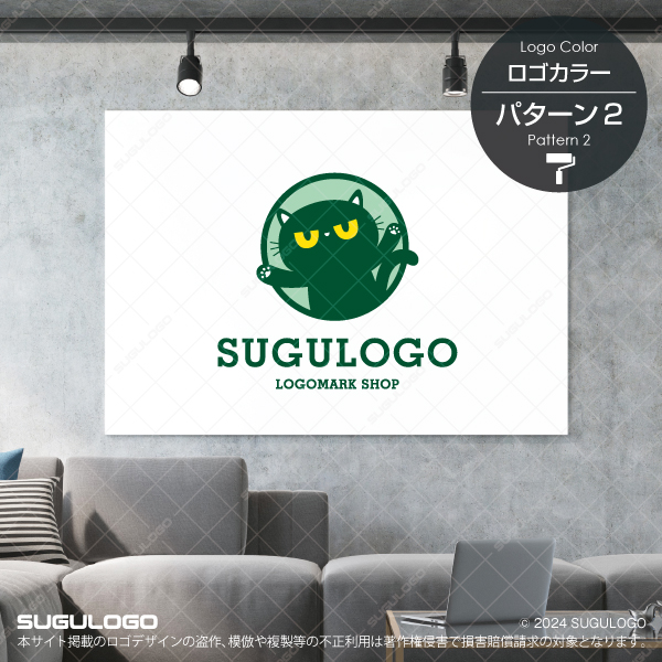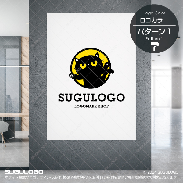 丸い背景から身を乗り出すようなポーズをとった、少し不機嫌そうでユニークな表情の黒猫を描いたロゴデザインです。太めのラインで表現されたフォルムと、じっとこちらを見つめる大きな瞳が強いインパクトを放ちます。キャラクター性が高く、一度見たら忘れられないキャッチーなシンボルマークとして、ブランドの顔にふさわしい親しみやすさを備えています。鋭い爪を出した手やピンと立った耳など、細部の造形がデザインに躍動感とリズムを与えており、自由で遊び心のある雰囲気を演出します。このロゴは、見る人の記憶に深く刻まれる存在感を発揮し、関わる人々の心を惹きつけるとともに、組織の結束を固め、未来へ向けた独創的なビジョンの発展を支えます。【おすすめの業種】アパレル、スイーツ店、エンタメ、IT、保護猫活動、教育