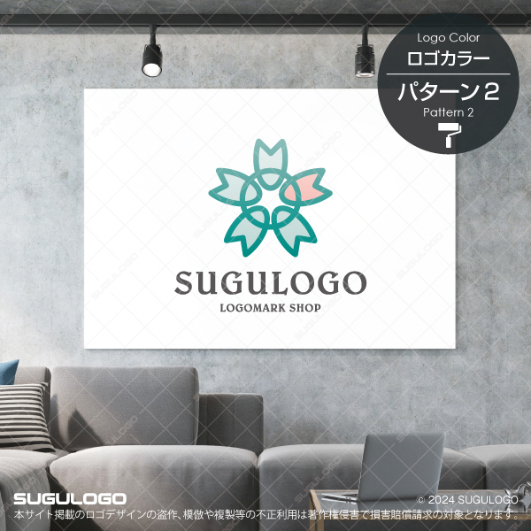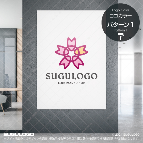 【ロゴ販売】桜と輪が調和を描く優美なロゴデザイン