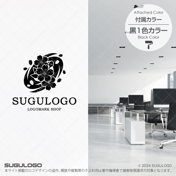吹き抜ける「春の嵐」のような躍動的な旋回ラインの中に、可憐に咲き誇るサクラを描き出したロゴデザインです。中心で力強く花開く大輪と、風に乗り舞い踊る花びらの造形は、ブランドが持つ華やかな魅力と、新時代を切り拓くダイナミックな推進力を表現しています。シンボルマークを構成する流麗な渦のフォルムは、多角的な視点から生まれる革新的なアイデアが加速し、大きなうねりとなって社会に新たな息吹をもたらす精神性を提示しています。伝統的な日本の美意識とエネルギッシュな機能美が響き合うこの意匠は、確固たる信念を基盤としながらも、常に進化を続け、輝かしい未来を創造していく組織の結束力と更なる発展を象徴しています。【おすすめの業種】イベント企画、美容・サロン、和食・カフェ、観光・地方創生、ギフトショップ