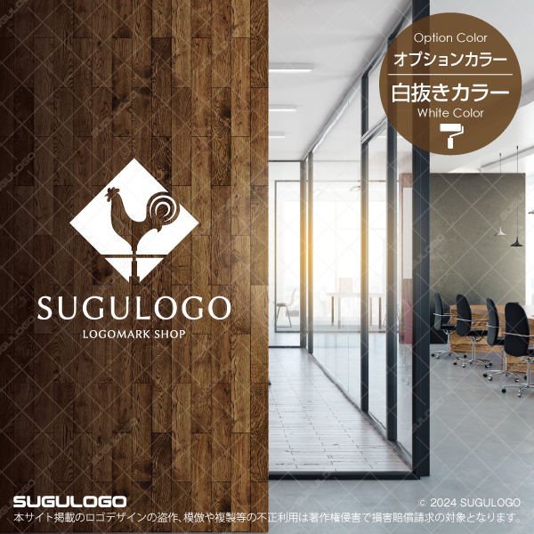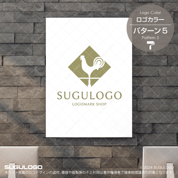 時代の風向きを的確に捉え、正しい方向へと導く風見鶏のシルエットを、正方形のフレームの中に描き出したロゴデザインです。水平線の上に凛と立つその姿は、組織としての揺るぎない判断力と、常に市場の動向を察知して最善の選択を行う高い先見性を提示しています。シンボルマークの中央で存在感を放つ鶏の造形は、多角的な視点から集約された情報が、確かな指針となって未来を切り拓いていくブランドの精神性を体現しています。知的な均整美と力強い意匠が響き合うこのフォルムは、確固たる信念を基盤としながらも、時代の変化を柔軟に受け入れ、輝かしい発展を遂げていく組織の結束力と更なる躍進を象徴しています。【おすすめの業種】経営コンサルティング、IT・テクノロジー、建築・設計、不動産投資、広告・マーケティング