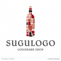 アート(芸術的)なロゴデザイン 【ロゴ販売】モザイクのワインボトルが彩るロゴマーク