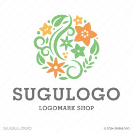 アート(芸術的)なロゴデザイン 【ロゴ販売】円形に咲く花々が調和を表現するロゴデザイン