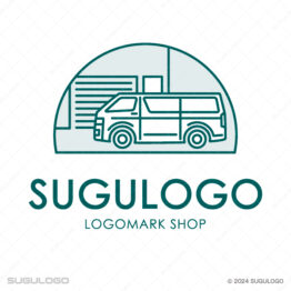 クラシック(古典的)なロゴデザイン 自動車(ワンボックスカー)とガレージ(倉庫)のロゴ