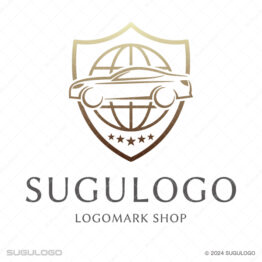 エレガント(上品)なロゴデザイン 自動車・地球・盾(シールド)・星のエンブレムロゴ