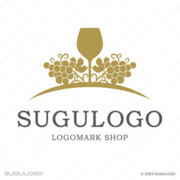 エレガント(上品)なロゴデザイン ぶどうとワイングラスが奏でる優雅なワイナリーロゴ