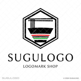 クラシック(古典的)なロゴデザイン 【ロゴ販売】麺と六角形が彩る伝統のロゴデザイン