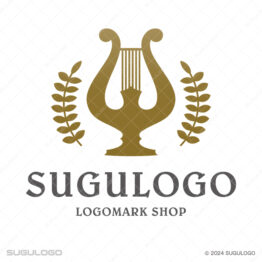 クラシック(古典的)なロゴデザイン 【ロゴ販売】竪琴と月桂樹の芸術ロゴデザイン