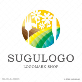 エレガント(上品)なロゴデザイン 【ロゴ販売】田畑と花々が彩る自然のロゴデザイン