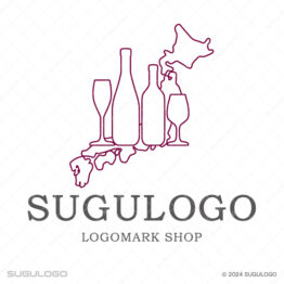エレガント(上品)なロゴデザイン 【ロゴ販売】日本地図とワインが彩るロゴデザイン