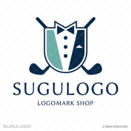 スポーツがモチーフのロゴデザイン タキシードとゴルフクラブの紋章(エンブレム)ロゴ スポーツがモチーフのロゴデザインスマート・クールなロゴデザインファッションがモチーフのロゴデザイン男性的な(かっこいい)ロゴデザイン