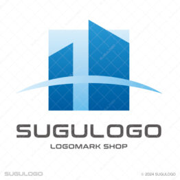 エレガント(上品)なロゴデザイン 【ロゴ販売】地平線にそびえ立つ高層ビルと都市開発のロゴデザイン