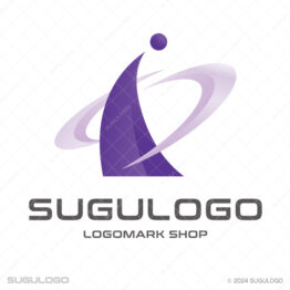 Iのロゴデザイン 【ロゴ販売】人物と軌道が交差する先進的なロゴデザイン