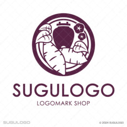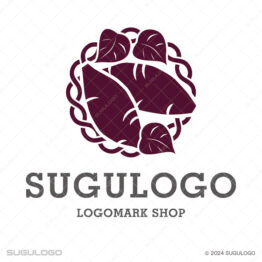 丸・円形がモチーフのロゴデザイン サツマイモと葉とつるがモチーフの円形ロゴマーク