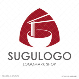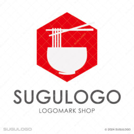 スマート・クールなロゴデザイン 麺と丼を使った六角形(ヘキサゴン)の和風モダンロゴ