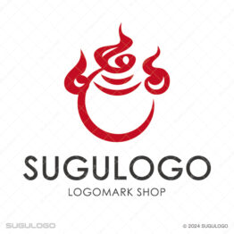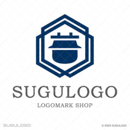 和風(日本的)なロゴデザイン 【ロゴ販売】羽釜と六角形の伝統ロゴデザイン