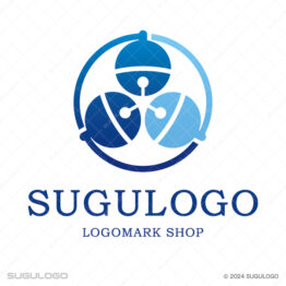 丸・円形がモチーフのロゴデザイン 【ロゴ販売】三つの鈴の幾何学ロゴデザイン