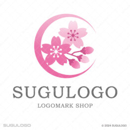 丸・円形がモチーフのロゴデザイン 【ロゴ販売】桜と三日月が日本の美を伝えるロゴデザイン