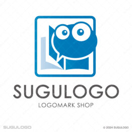 四角い(正方形・長方形)のロゴデザイン 【ロゴ販売】本と吹き出しキャラクターのロゴデザイン