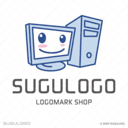 子供向けの(かわいい)ロゴデザイン 【ロゴ販売】笑顔のパソコン・親しみロゴ