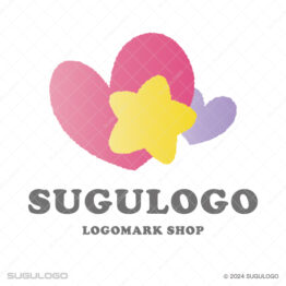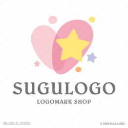 ポップ・カジュアルなロゴデザイン 【ロゴ販売】ハートと星が輝く温かなロゴデザイン