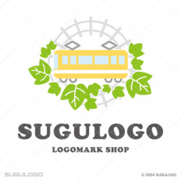 ポップ・カジュアルなロゴデザイン 路面電車と緑の葉が調和した交通・観光向けロゴ