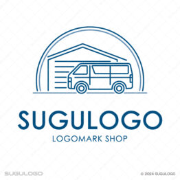 スマート・クールなロゴデザイン 倉庫と自動車をライン(線)で表現したロゴデザイン