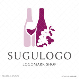 エレガント(上品)なロゴデザイン ワインボトル、グラス、葡萄を組合せたロゴデザイン