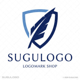 スマート・クールなロゴデザイン 【ロゴ販売】羽ペンと盾が知性と信頼を象徴するロゴデザイン