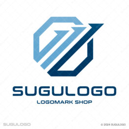 スマート・クールなロゴデザイン 【ロゴ販売】八角形と上昇ラインの幾何学ロゴ