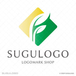 Fのロゴデザイン 【ロゴ販売】双葉とひし形の躍進ロゴ