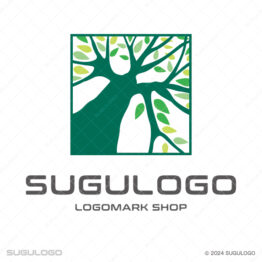 四角い(正方形・長方形)のロゴデザイン 【ロゴ販売】木漏れ日が導く信頼と成長の樹木ロゴ