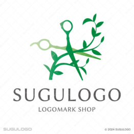 用具・用品のロゴデザイン 【ロゴ販売】ハサミと植物の美容ロゴデザイン