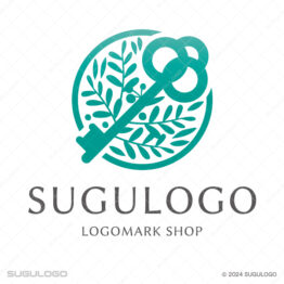 エレガント(上品)なロゴデザイン 【ロゴ販売】鍵と植物の信頼ロゴデザイン