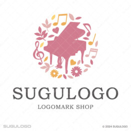 丸・円形がモチーフのロゴデザイン 【ロゴ販売】ピアノと花音の音楽ロゴデザイン
