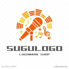 ポップ・カジュアルなロゴデザイン 【ロゴ販売】マイクと音符のカラオケロゴデザイン