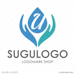 Uのロゴデザイン 【ロゴ販売】Uと手が包み込む温かなロゴ